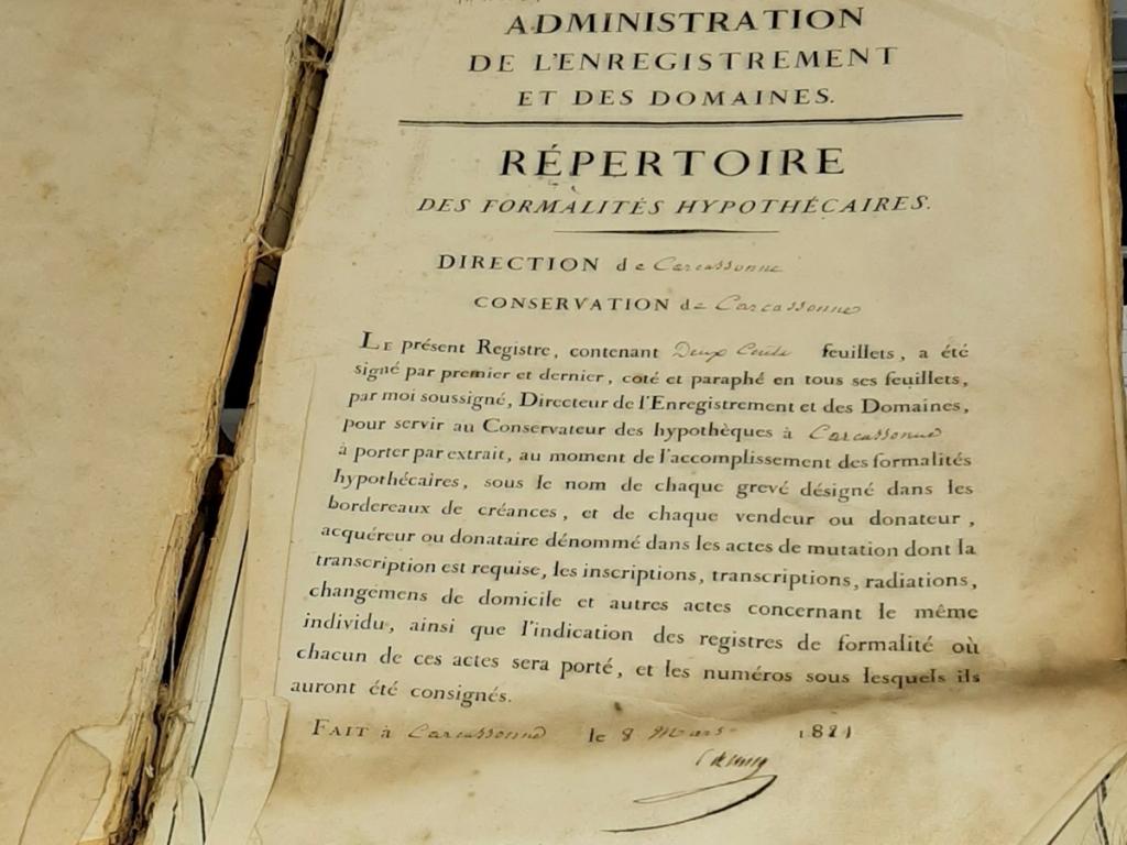 Les Archives départementales de l'Aude lancent une nouvelle campagne de numérisation des registres hypothécaires couvrant la période de 1799 à 1955 (sous-série 4Q)