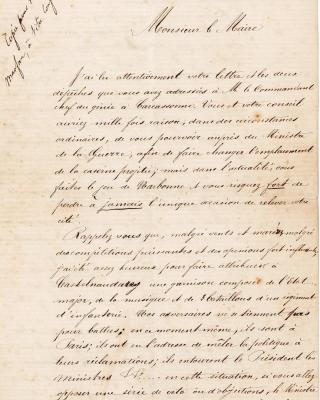 Après avoir intégré l'École militaire de Saint-Cyr en 1835, il part pour l'Algérie en 1840 où il est rapidement promu au rang de capitaine. Ce fonds est composé d’une importante correspondance qu’il entretient avec sa famille depuis l’Algérie, pendant 28 ans, et de rapports qu’il envoie à l’Empereur Napoléon III sur la situation en Algérie pendant cette phase de la colonisation.